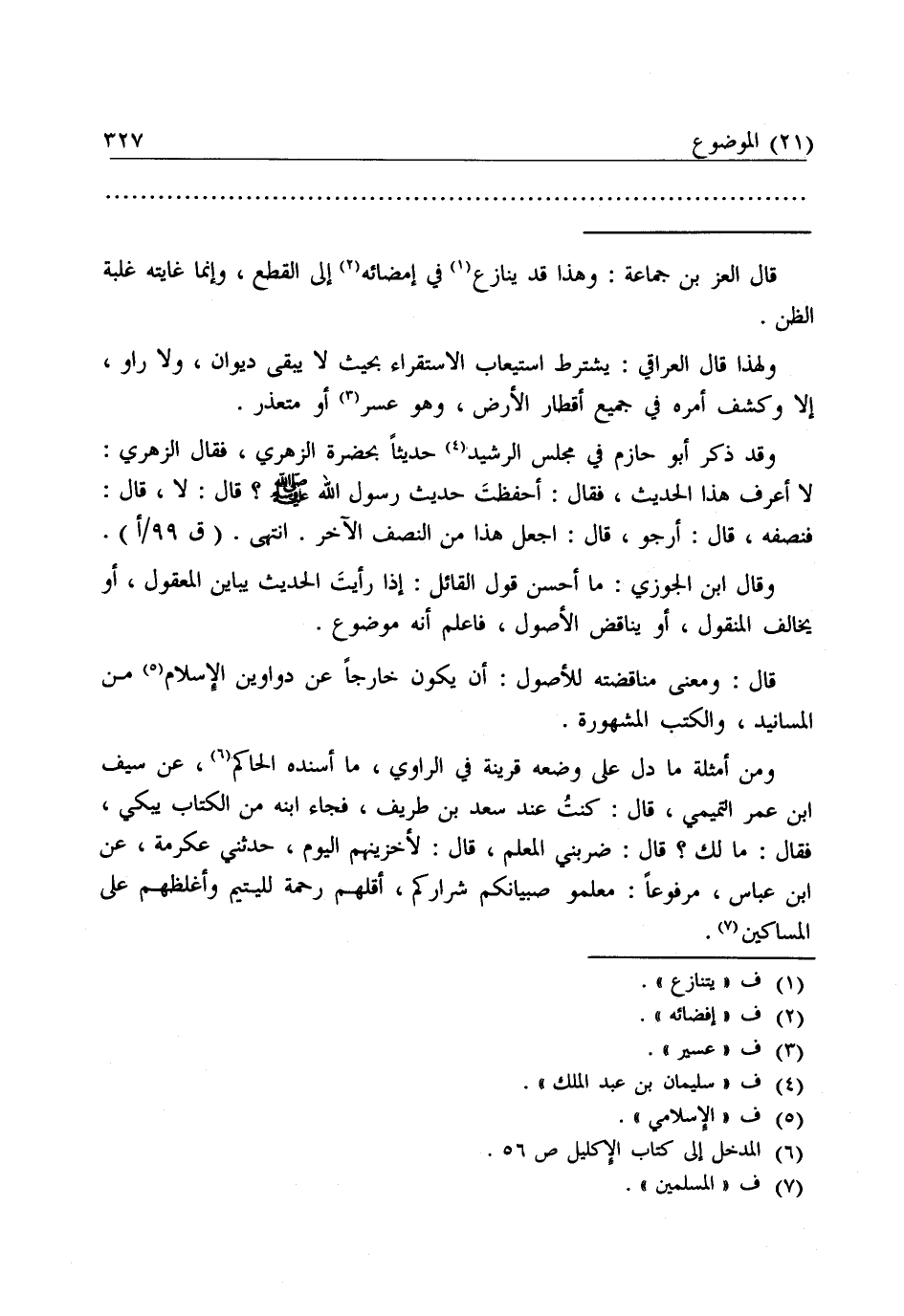 قَالَ: وَمَعْنَى مُنَاقَضَتِهِ لِلْأُصُولِ: أَنْ يَكُونَ خَارِجًا، عَنْ دَوَاوِينِ الْإِسْلَامِ مِنَ الْمَسَانِيدِ وَالْكُتُبِ الْمَشْهُورَةِ