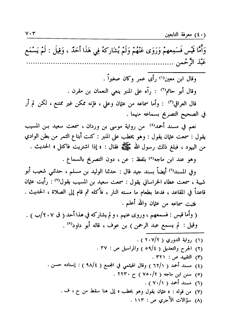 قَالَ الْعِرَاقِيُّ: وَأَمَّا سَمَاعُهُ مِنْ عُثْمَانَ وَعَلِيٍّ، فَإِنَّهُ مُمْكِنٌ غَيْرُ مُمْتَنِعٍ، لَكِنْ لَمْ أَرَ فِي الصَّحِيحِ التَّصْرِيحَ بِسَمَاعِهِ مِنْهُمَا.