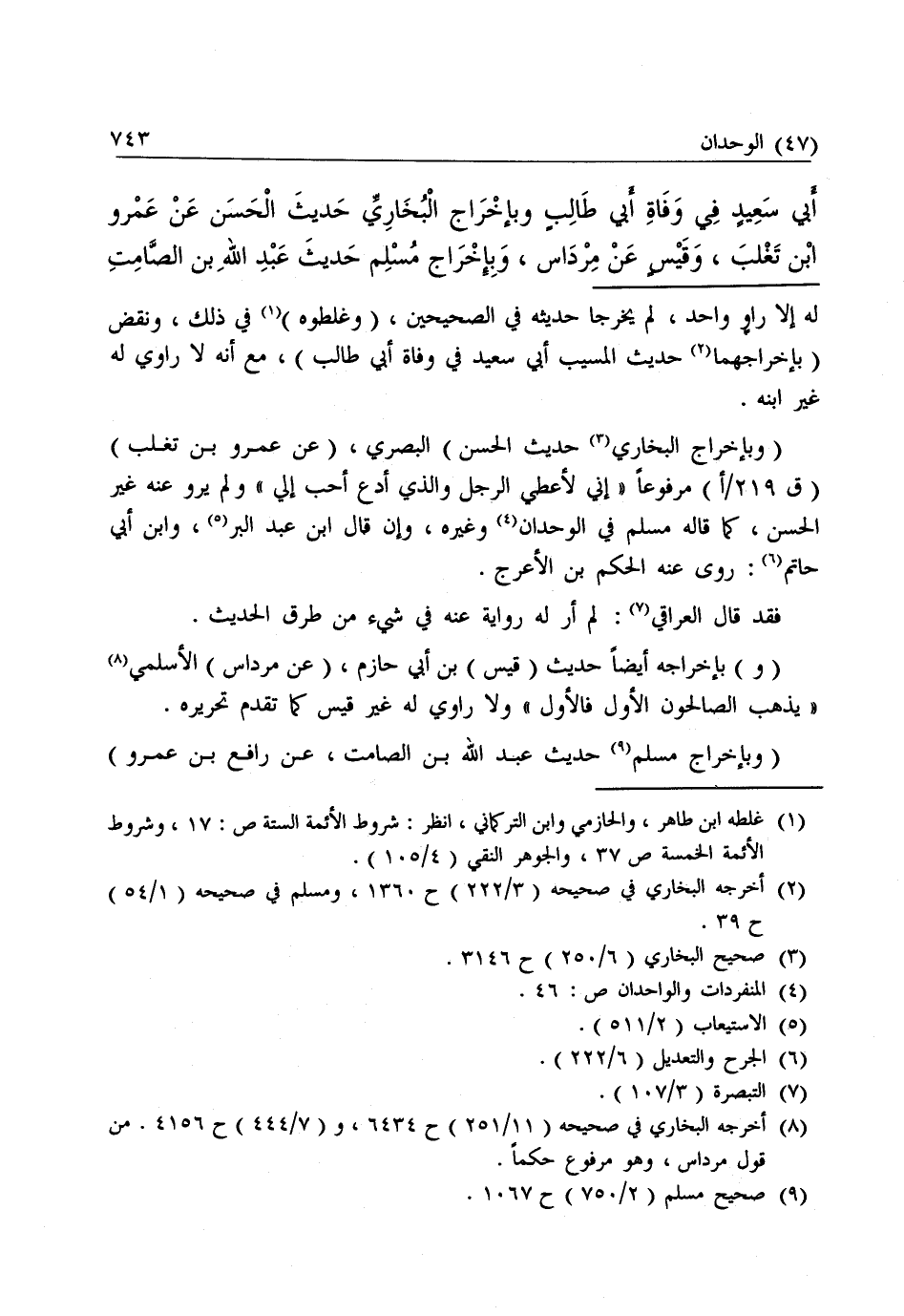 (وَبِإِخْرَاجِ الْبُخَارِيِّ حَدِيثَ الْحَسَنِ) الْبَصْرِيِّ، (عَنْ عَمْرِو بْنِ تَغْلِبَ) مَرْفُوعًا: «إِنِّي لَأُعْطِي الرَّجُلَ وَالَّذِي أَدَعُ أَحَبُّ إِلَيَّ» . وَلَمْ يَرْوِ عَنْهُ غَيْرُ الْحَسَنِ كَمَا قَالَهُ مُسْلِمٌ فِي الْوُحْدَانِ وَغَيْرِهِ، وَإِنْ قَالَ ابْنُ عَبْدِ الْبَرِّ وَابْنُ أَبِي حَاتِمٍ: رَوَى عَنْهُ الْحَكَمُ بْنُ الْأَعْرَجِ.