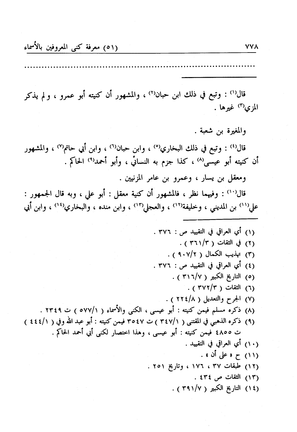 قَالَ: وَتَبِعَ فِي ذَلِكَ الْبُخَارِيَّ، وَابْنَ حِبَّانَ، وَابْنَ أَبِي حَاتِمٍ، وَالْمَشْهُورُ أَنَّ كُنْيَتَهُ أَبُو عِيسَى، كَذَا جَزَمَ بِهِ النَّسَائِيُّ، وَأَبُو أَحْمَدَ الْحَاكِمُ.