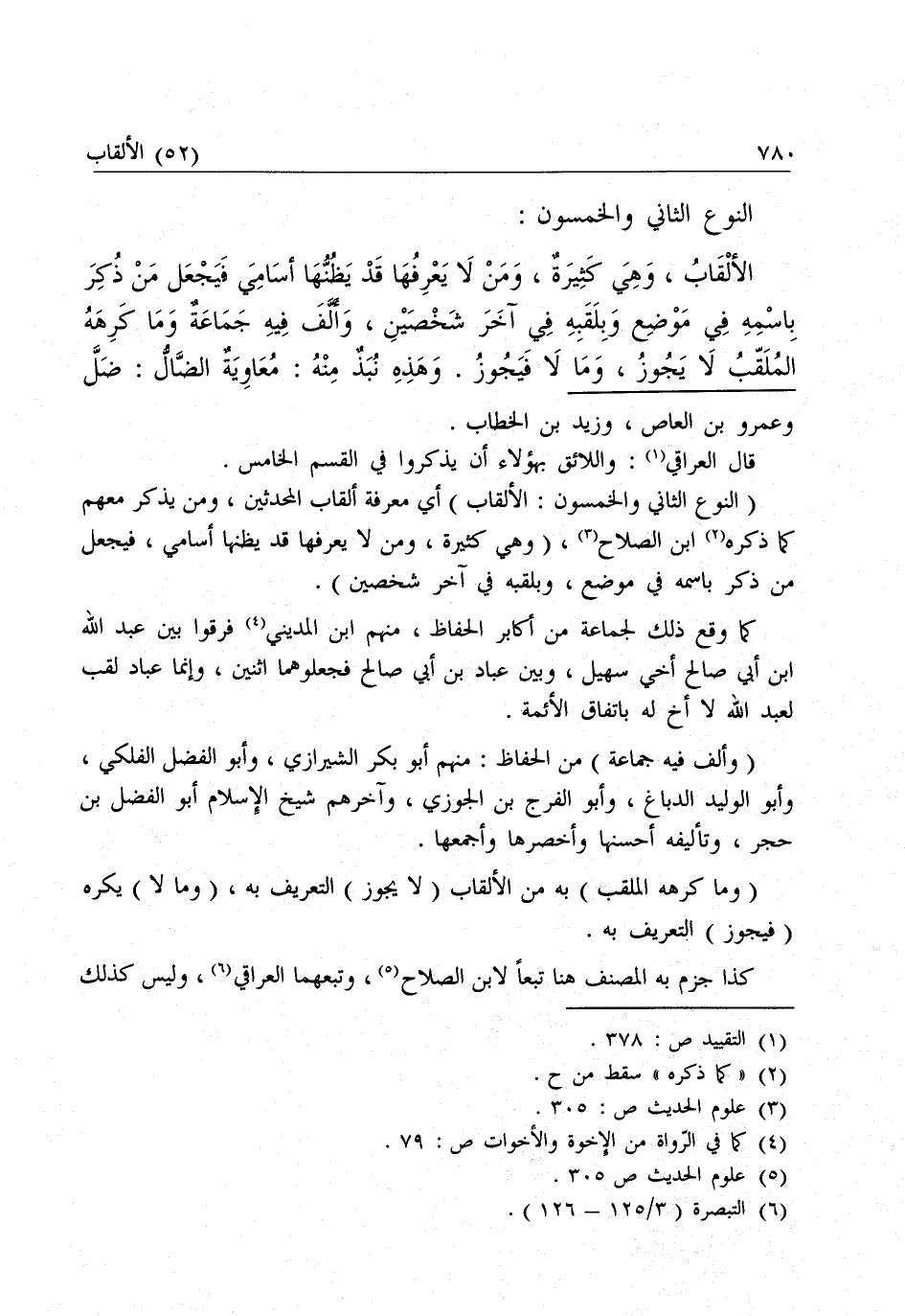 (النَّوْعُ الثَّانِي وَالْخَمْسُونَ: الْأَلْقَابُ) أَيْ مَعْرِفَةُ أَلْقَابِ الْمُحَدِّثِينَ، وَمَنْ يُذْكَرُ مَعَهُمْ كَمَا ذَكَرَهُ ابْنُ الصَّلَاحِ، (وَهِيَ كَثِيرَةٌ، وَمَنْ لَا يَعْرِفُهَا قَدْ يَظُنُّهَا أَسَامِيَ، فَيَجْعَلَ مَنْ ذُكِرَ بِاسْمِهِ فِي مَوْضِعٍ، وَبِلَقَبِهِ فِي آخِرَ شَخْصَيْنِ) .