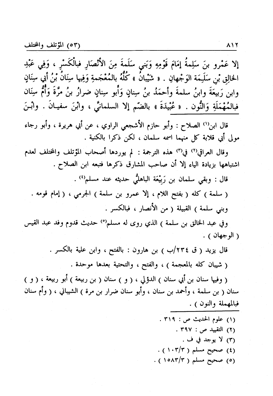 وَقَالَ الْعِرَاقِيُّ فِي هَذِهِ التَّرْجَمَةِ: لَمْ يُورِدْهَا أَصْحَابُ الْمُؤْتَلِفِ وَالْمُخْتَلِفِ لِعَدَمِ اشْتِبَاهِهَا بِزِيَادَةِ الْيَاءِ، إِلَّا أَنَّ صَاحِبَ الْمَشَارِقِ ذَكَرَهَا فَتَبِعَهُ ابْنُ الصَّلَاحِ.