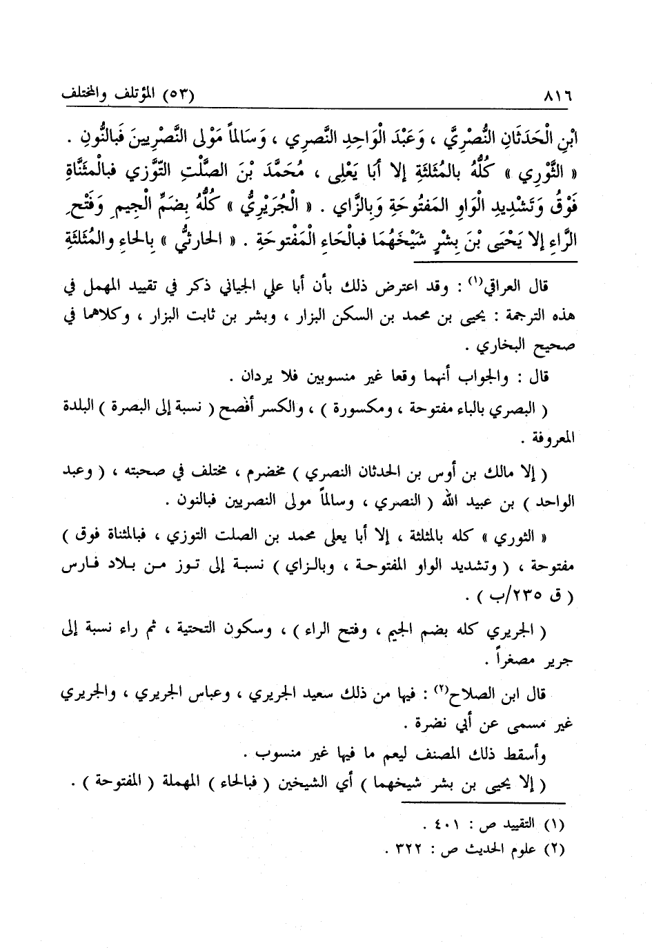قَالَ ابْنُ الصَّلَاحِ: فِيهَا مِنْ ذَلِكَ سَعِيدٌ الْجُرَيْرِيُّ، وَعَبَّاسٌ الْجُرَيْرِيُّ، وَالْجُرَيْرِيُّ غَيْرَ مُسَمًّى عَنْ أَبِي نَضْرَةَ.