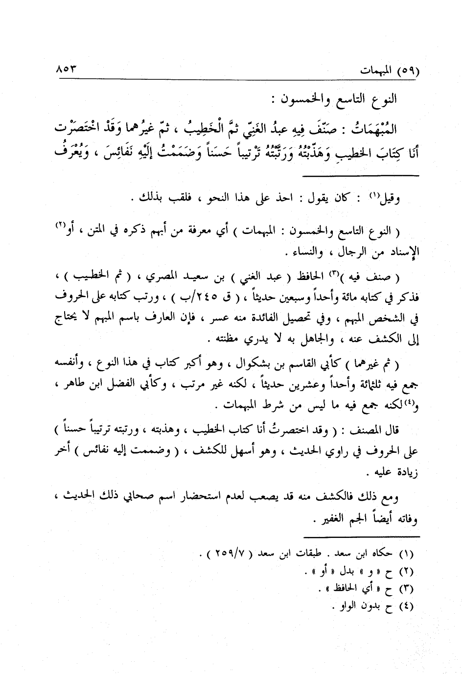 الْمُبْهَمَاتُ: صَنَّفَ فِيهِ عَبْدُ الْغَنِيِّ ثُمَّ الْخَطِيبُ، ثُمَّ غَيْرُهُمَا وَقَدِ اخْتَصَرْتُ أَنَا كِتَابَ الْخَطِيبِ وَهَذَّبْتُهُ وَرَتَّبْتُهُ تَرْتِيبًا حَسَنًا وَضَمَمْتُ إِلَيْهِ نَفَائِسَ، وَيُعْرَفُ بُورُودِهِ مُسَمًّى فِي بَعْضِ الرِّوَايَاتِ.