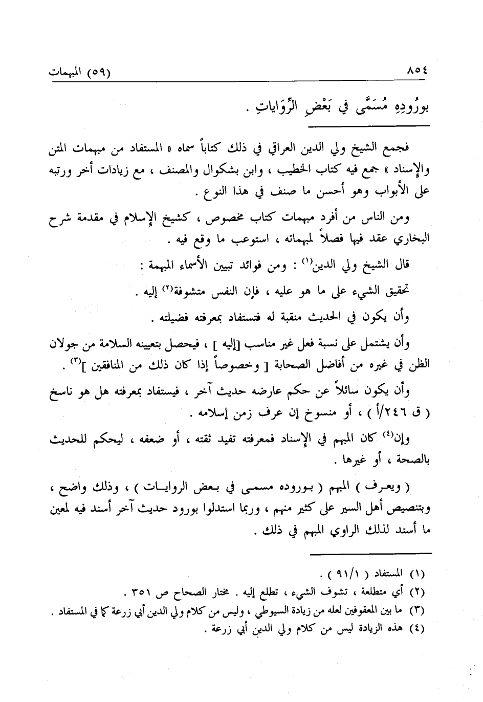 ـــــــــــــــــــــــــــــQفَجَمَعَ الشَّيْخُ وَلِيُّ الدِّينِ الْعِرَاقِيُّ فِي ذَلِكَ كِتَابًا سَمَّاهُ: " الْمُسْتَفَادَ مِنْ مُبْهَمَاتِ الْمَتْنِ وَالْإِسْنَادِ "، جَمَعَ فِيهِ كِتَابَ الْخَطِيبِ، وَابْنِ بَشْكُوَالَ وَالْمُصَنِّفِ، مَعَ زِيَادَاتٍ أُخَرَ وَرَتَّبَهُ عَلَى الْأَبْوَابِ وَهُوَ أَحْسَنُ مَا صُنِّفَ فِي هَذَا النَّوْعِ.