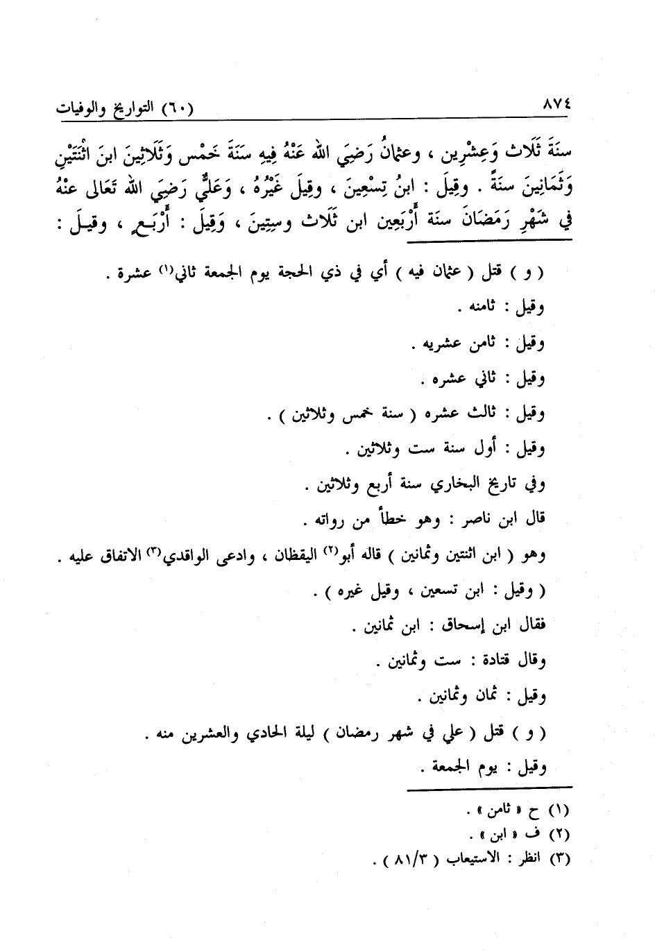 ـــــــــــــــــــــــــــــQ (وَ) قُتِلَ (عُثْمَانُ فِيهِ) أَيْ فِي ذِي الْحِجَّةِ يَوْمَ الْجُمْعَةِ ثَانِيَ عَشْرَةَ.