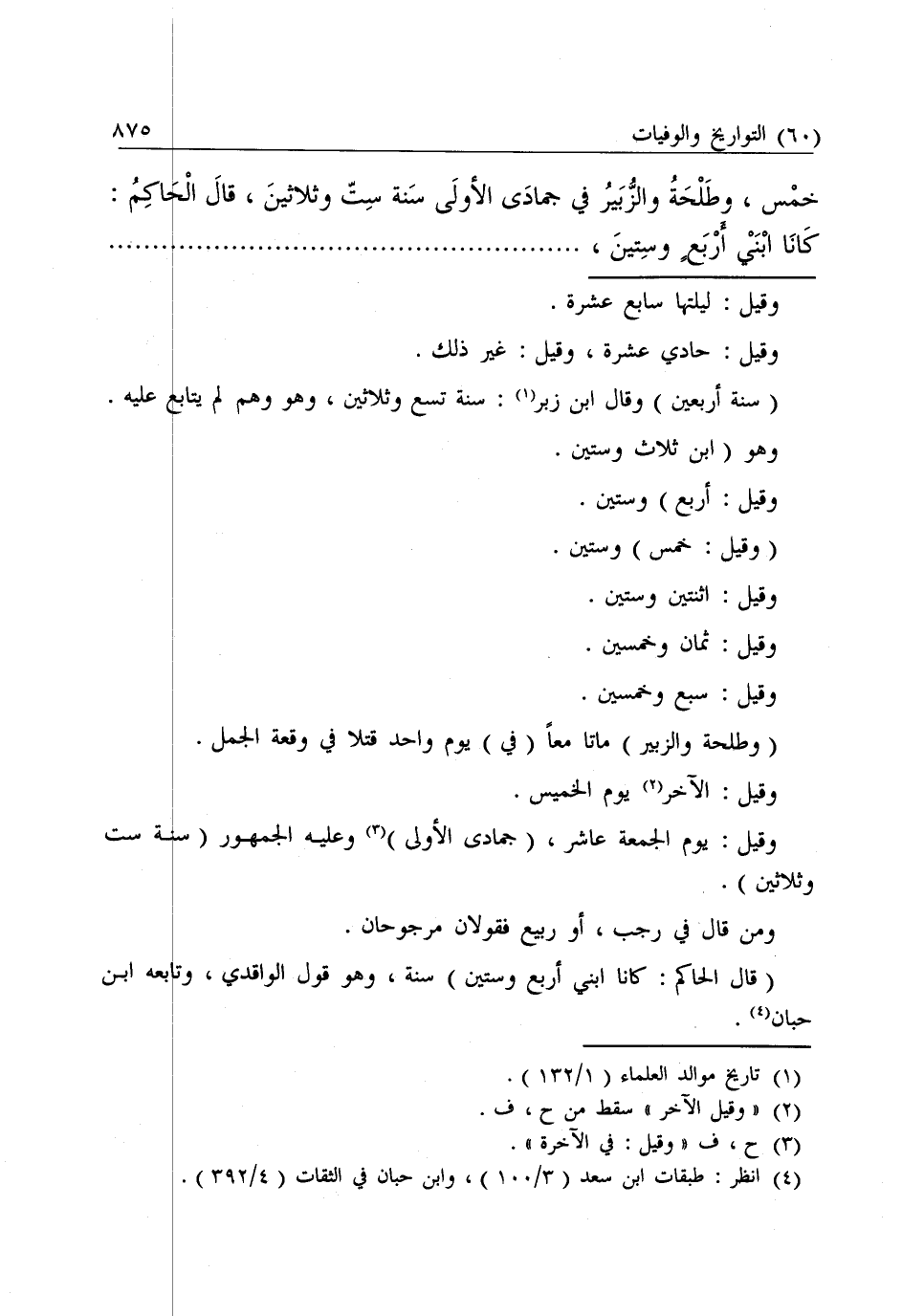 (وَطَلْحَةُ وَالزُّبَيْرُ) مَاتَا مَعًا (فِي) يَوْمٍ وَاحِدٍ قُتِلَا فِي وَقْعَةِ الْجَمَلِ.