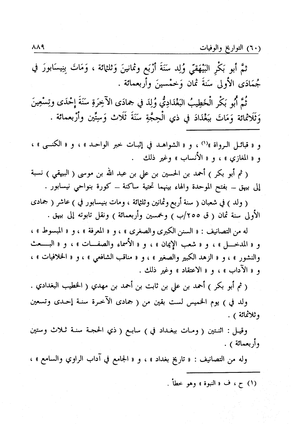 (ثُمَّ أَبُو بَكْرٍ) أَحْمَدُ بْنُ عَلِيِّ بْنِ ثَابِتِ بْنِ أَحْمَدَ بْنِ مَهْدِيٍّ (الْخَطِيبُ الْبَغْدَادِيُّ.