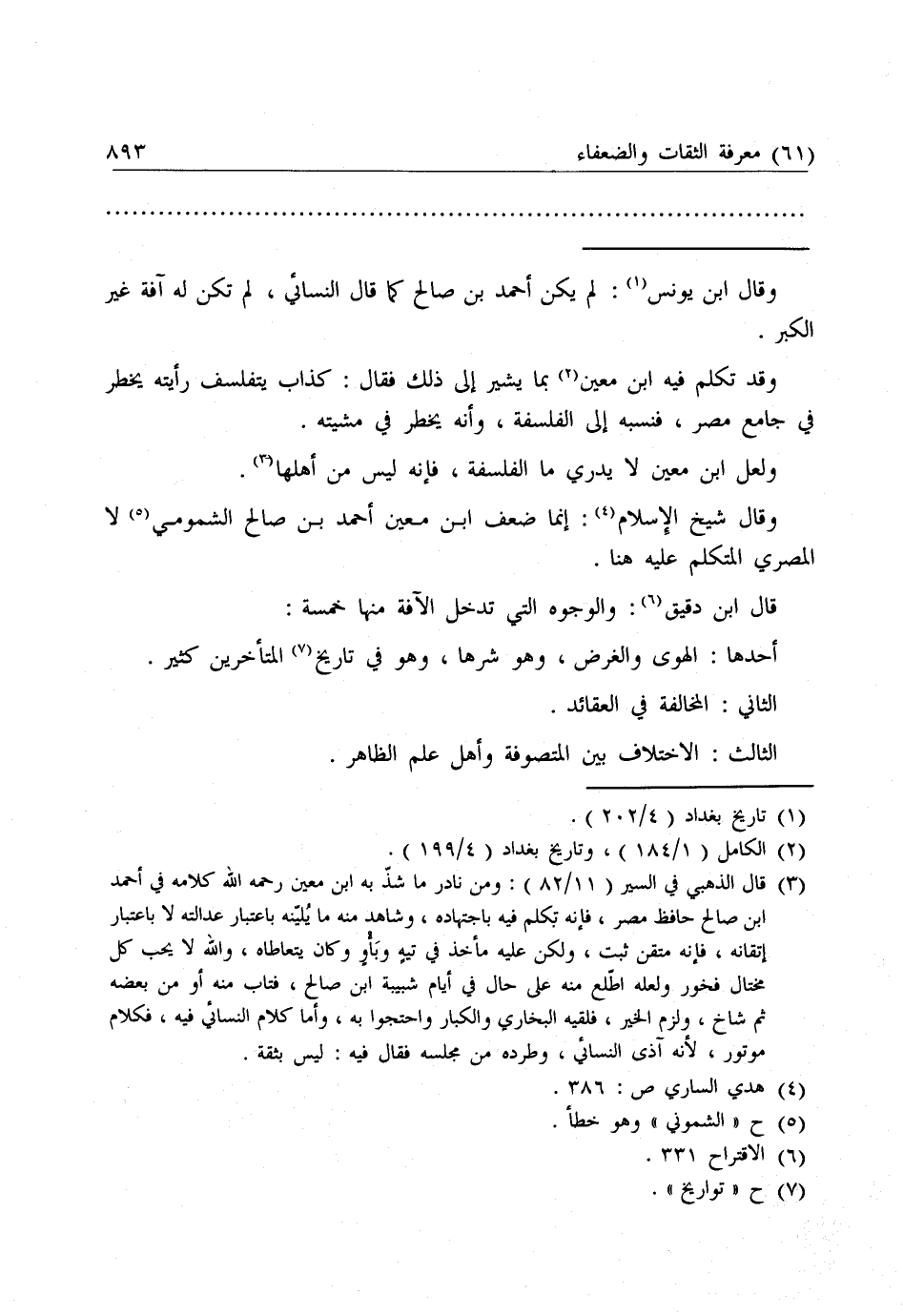 وَقَالَ شَيْخُ الْإِسْلَامِ: إِنَّمَا ضَعَّفَ ابْنُ مَعِينٍ أَحْمَدَ بْنَ صَالِحٍ الشَّمُومِيَّ لَا الْمِصْرِيَّ الْمُتَكَلَّمَ عَلَيْهِ هُنَا.