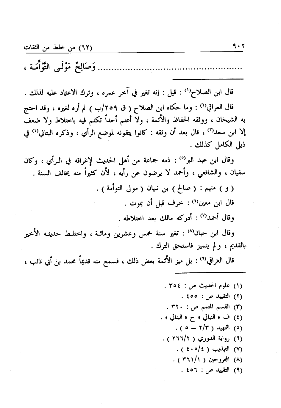 قَالَ الْعِرَاقِيُّ: وَمَا حَكَاهُ ابْنُ الصَّلَاحِ لَمْ أَرَهُ لِغَيْرِهِ، وَقَدِ احْتَجَّ بِهِ الشَّيْخَانِ، وَوَثَّقَهُ الْحُفَّاظُ وَالْأَئِمَّةُ، وَلَا أَعْلَمُ أَحَدًا تَكَلَّمَ فِيهِ بِاخْتِلَاطٍ وَلَا ضَعْفٍ إِلَّا ابْنَ سَعْدٍ قَالَ بَعْدَ أَنْ وَثَّقَهُ: كَانُوا يَتَّقُونَهُ لِمَوْضِعِ الرَّأْيِ، وَذَكَرَهُ الْبَتَّانِيُّ فِي ذَيْلِ الْكَامِلِ كَذَلِكَ.