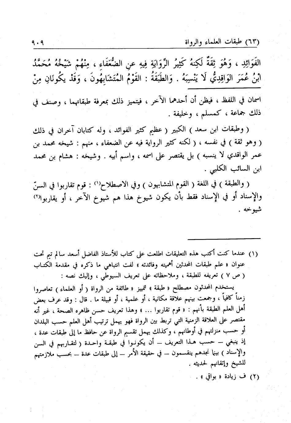 (وَطَبَقَاتُ ابْنُ سَعْدٍ) الْكَبِيرُ (عَظِيمٌ كَثِيرُ الْفَوَائِدِ، وَلَهُ كِتَابَانِ آخَرَانِ فِي ذَلِكَ (وَهُوَ ثِقَةٌ) فِي نَفْسِهِ، (لَكِنَّهُ كَثِيرُ الرِّوَايَةِ فِيهِ عَنِ الضُّعَفَاءِ، مِنْهُمْ: شَيْخُهُ مُحَمَّدُ بْنُ عُمَرَ الْوَاقِدِيُّ لَا يَنْسُبُهُ) بَلْ يَقْتَصِرُ عَلَى اسْمِهِ وَاسْمِ أَبِيهِ. وَشَيْخُهُ: هِشَامُ بْنُ مُحَمَّدِ بْنِ السَّائِبِ الْكَلْبِيُّ.
