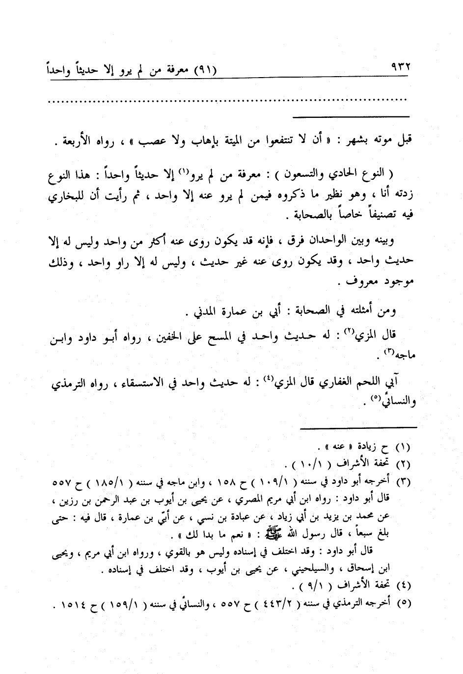 [النَّوْعُ الْحَادِي وَالتِّسْعُونَ مَعْرِفَةُ مَنْ لَمْ يَرْوِ إِلَّا حَدِيثًا وَاحِدًا] 1