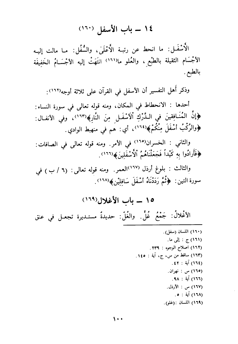 وَذكر أهل التَّفْسِير أَن الْأَسْفَل فِي الْقُرْآن على ثَلَاثَة أوجه: