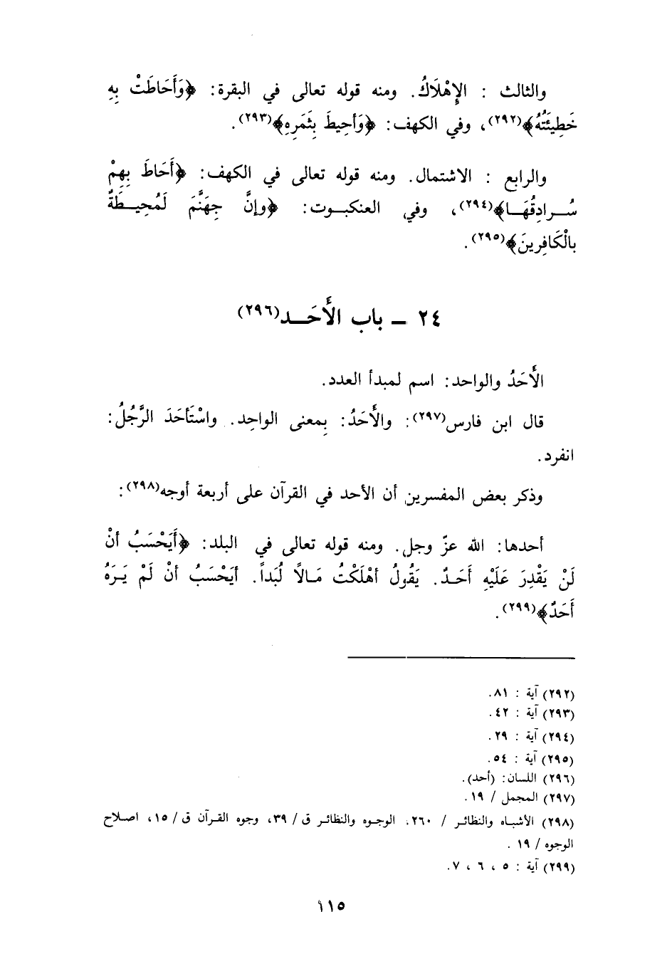 وَذكر بعض الْمُفَسّرين أَن الْأَحَد فِي الْقُرْآن على أَرْبَعَة أوجه: