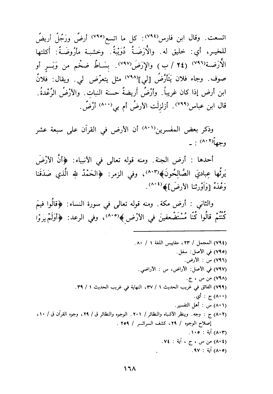 وَذكر بعض الْمُفَسّرين أَن الأَرْض فِي الْقُرْآن على سَبْعَة عشر وَجها: -