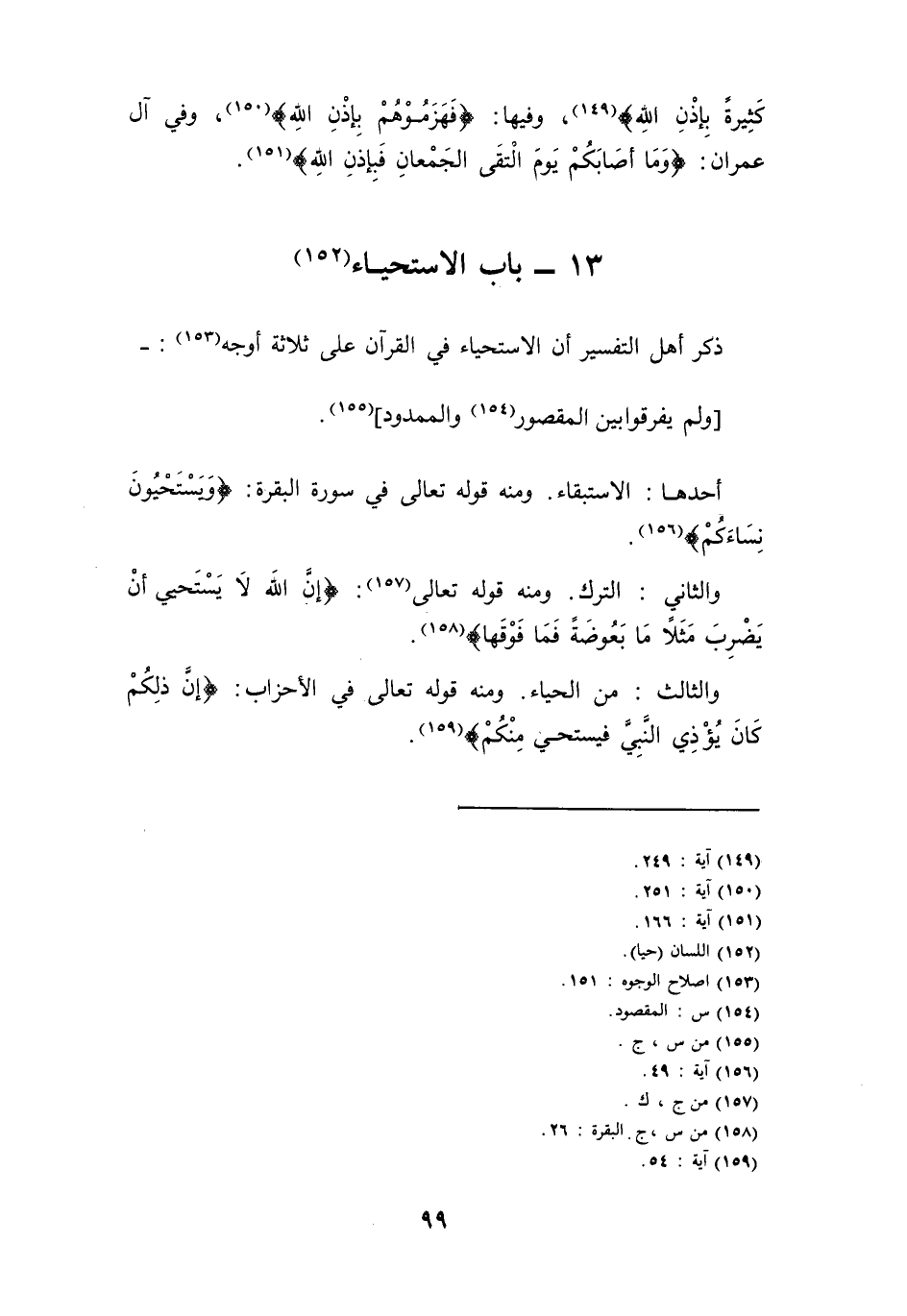 ذكر أهل التَّفْسِير أَن الاستحياء فِي الْقُرْآن على ثَلَاثَة أوجه: -