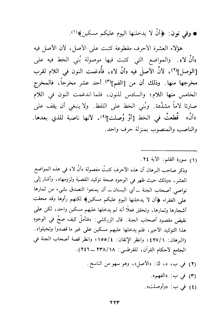 وفي نون: (أنْ لا يدخلنها اليوم عليكم مسكين) .