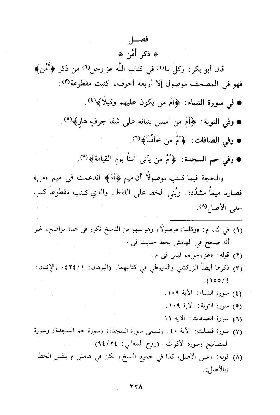 والحجة فيما كتب موصولًا أن ميم "أمْ" اندغمت في ميم "من"