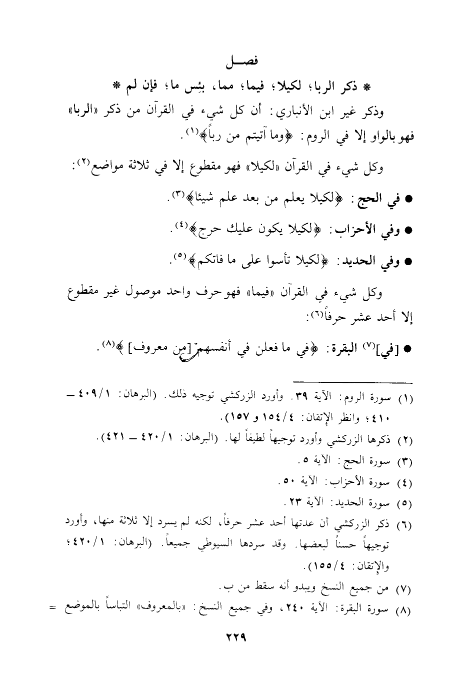 فصل ذكر الربا، لكيلا، فيما، مما، بئِس ما، فإن لم