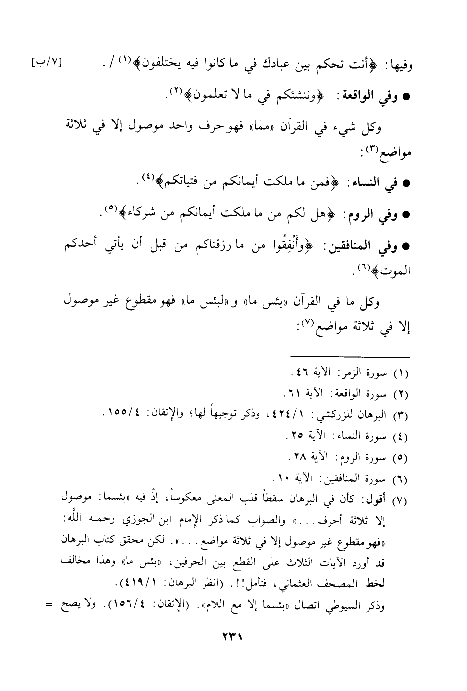 ، وكل ما في القرآن "بئس ما" و"لبئس ما" فهو مقطوع غير موصول