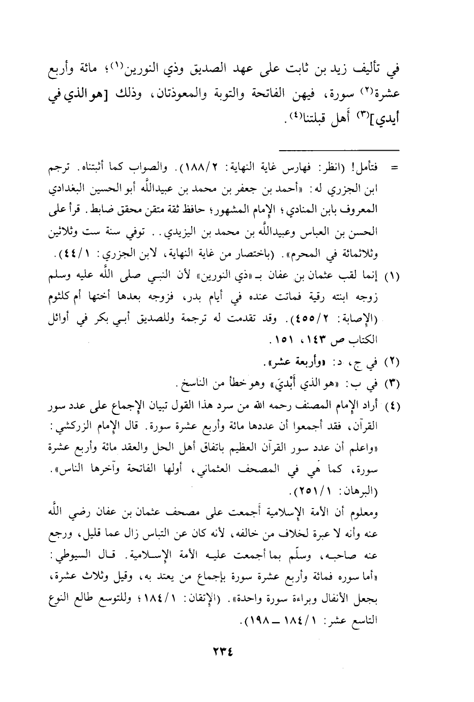 في تأليف زيد بن ثابت على عهد الصديق وذي النورين، مائة وأربع