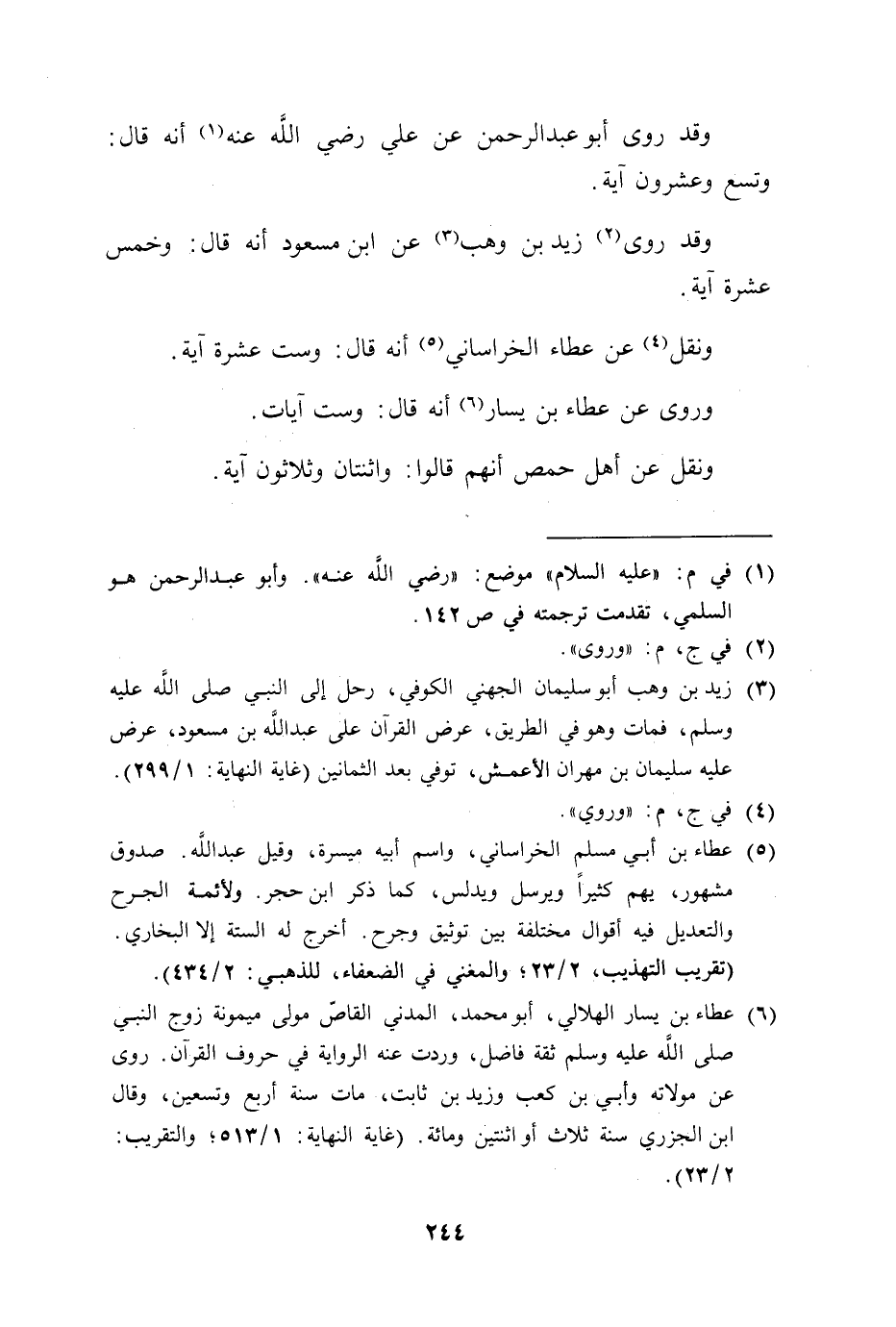 وروى عن عطاء بن يسار أنه قال: وست آيات.