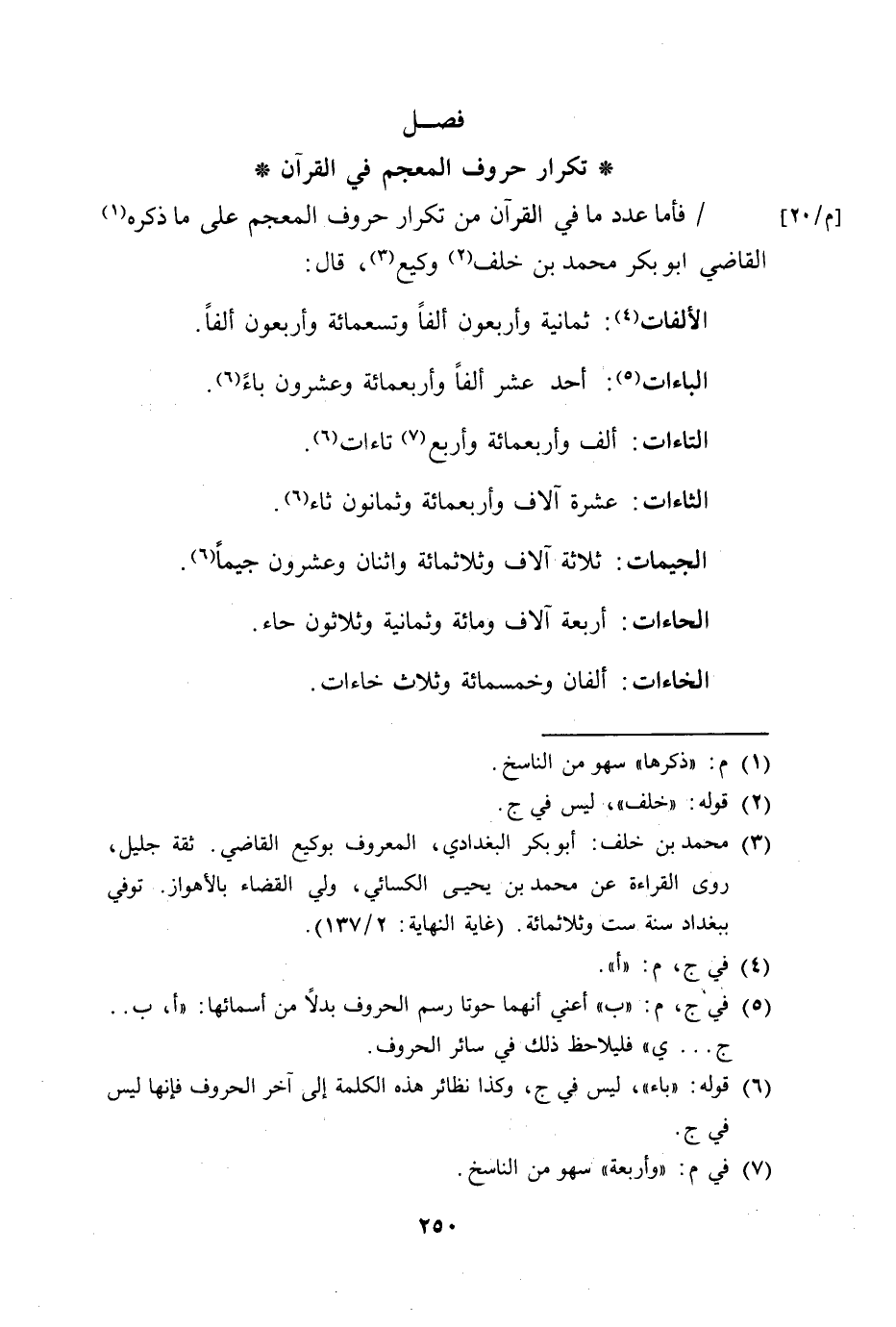 فأما عدد ما في القرآن من تكرار حروف المعجم على ما ذكره