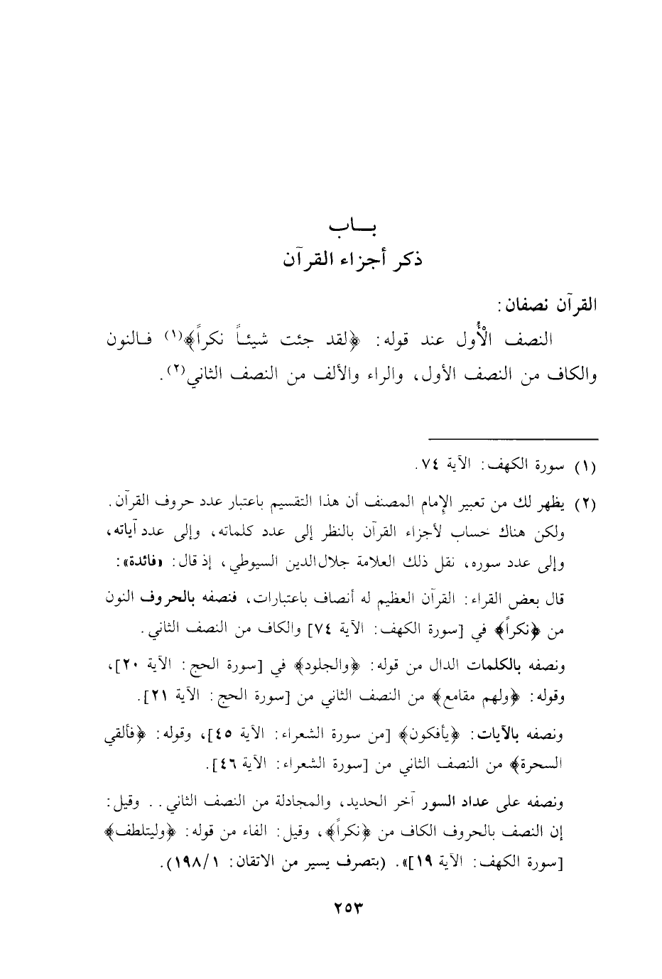 النصف الْأُول عند قوله: (لقد جئت شيئا نكراً) ، فالنون