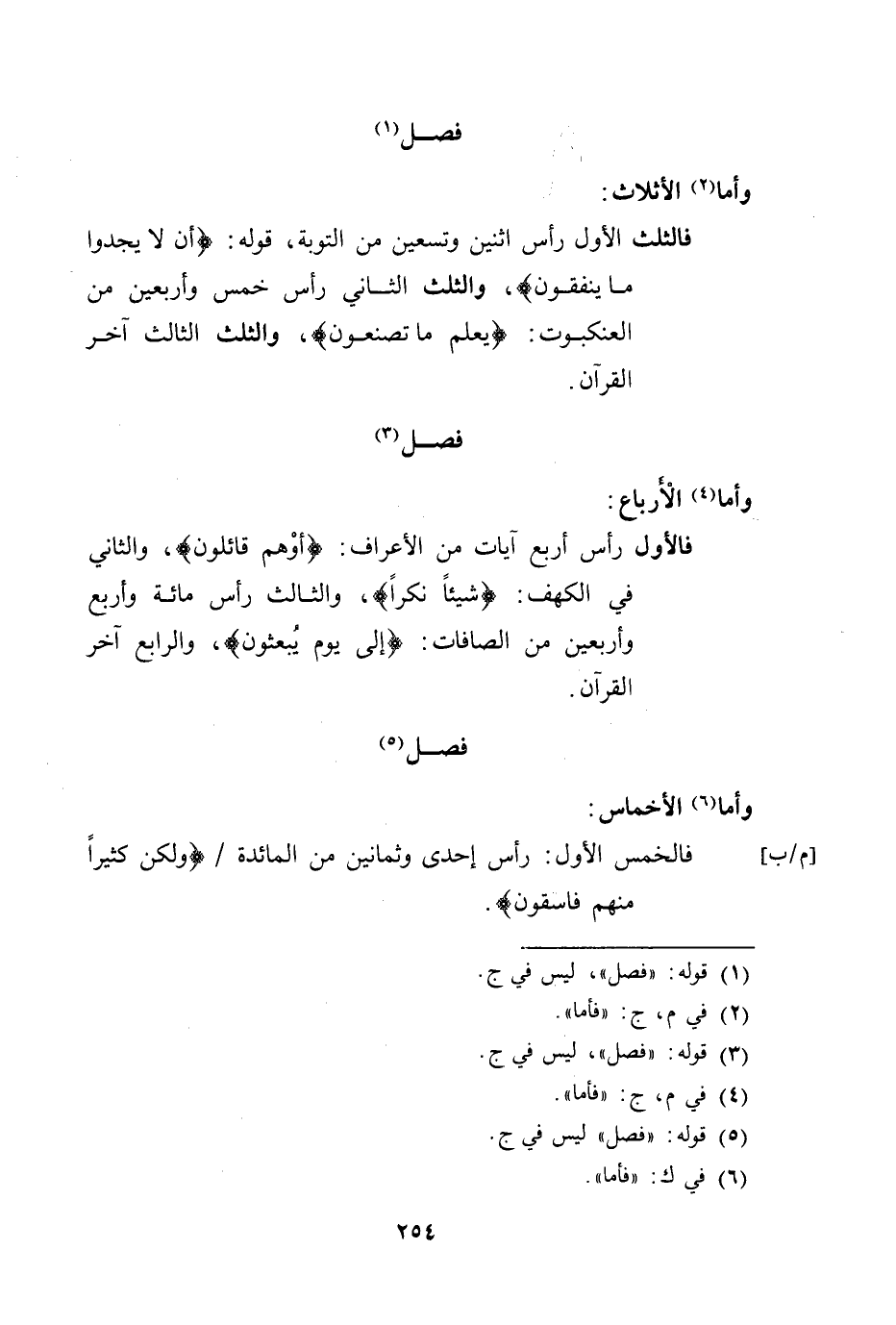 ما ينفقون) ، والثلث الثاني رأس خمس وأربعين من العنكبوت: (يعلم ما تصنعون) ، والثلث الثالث آخر القرآن.