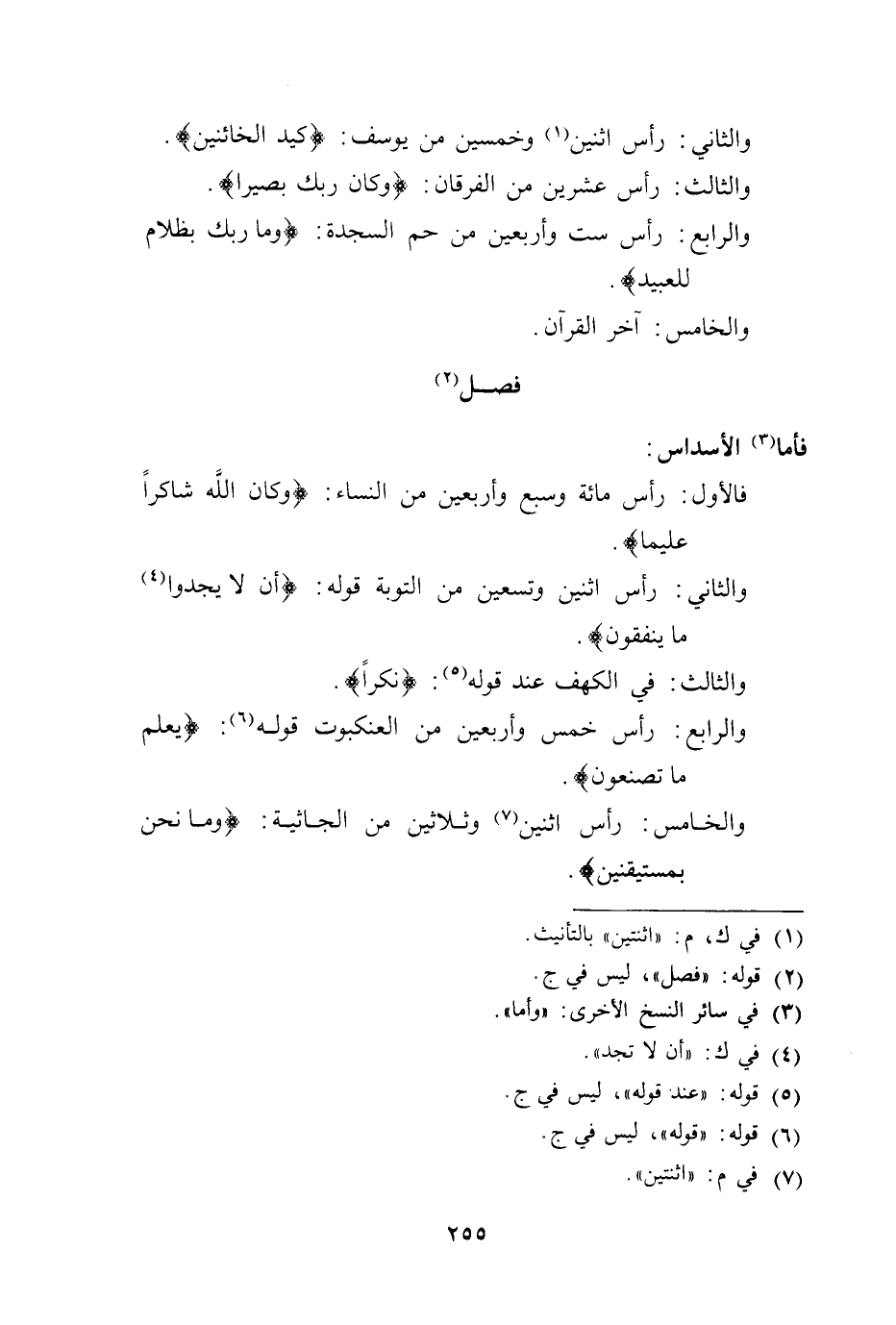 والرابع: رأس ست وأربعين من حم السجدة: (وما ربك بظلام للعبيد) .