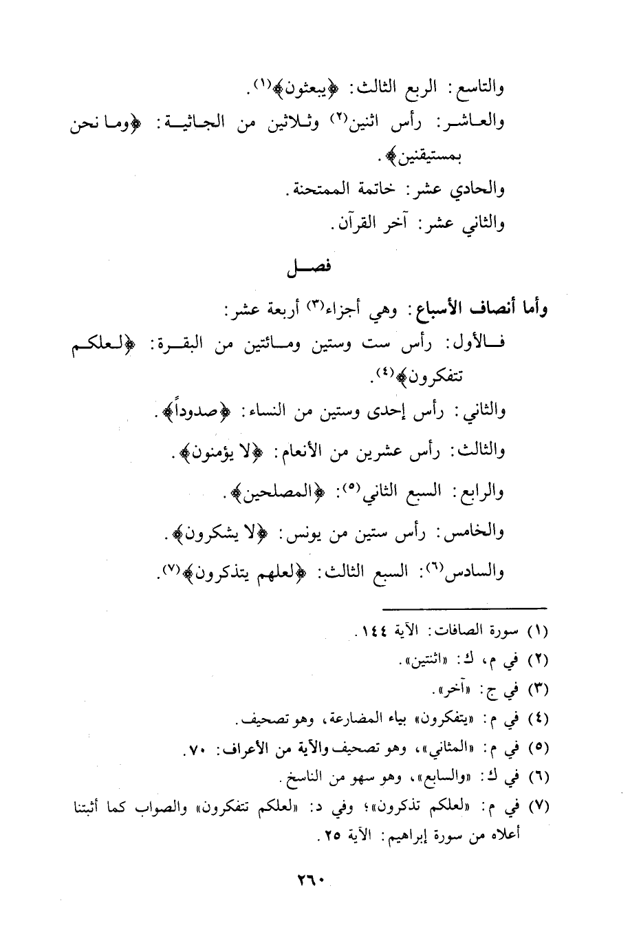 وأما أنصاف الأسباع: وهي أجزاء أربعة عشر: