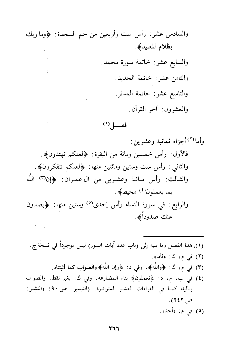 والثاني: رأس ست وستين ومائتين منها: (لعلكم تتفكرون) .