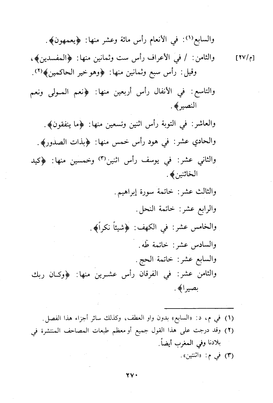 والثامن: في الأعراف رأس ست وثمانين منها: (المفسدين) .