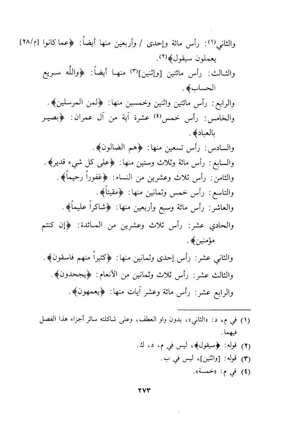 والرابع عشر: رأس مائة وعشر آيات منها: (يعمهون) .