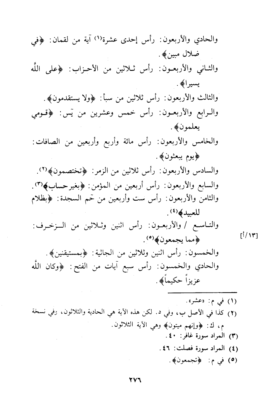 والحادي والأربعون: رأس إحدى عشرة آية من لقمان: (وفي