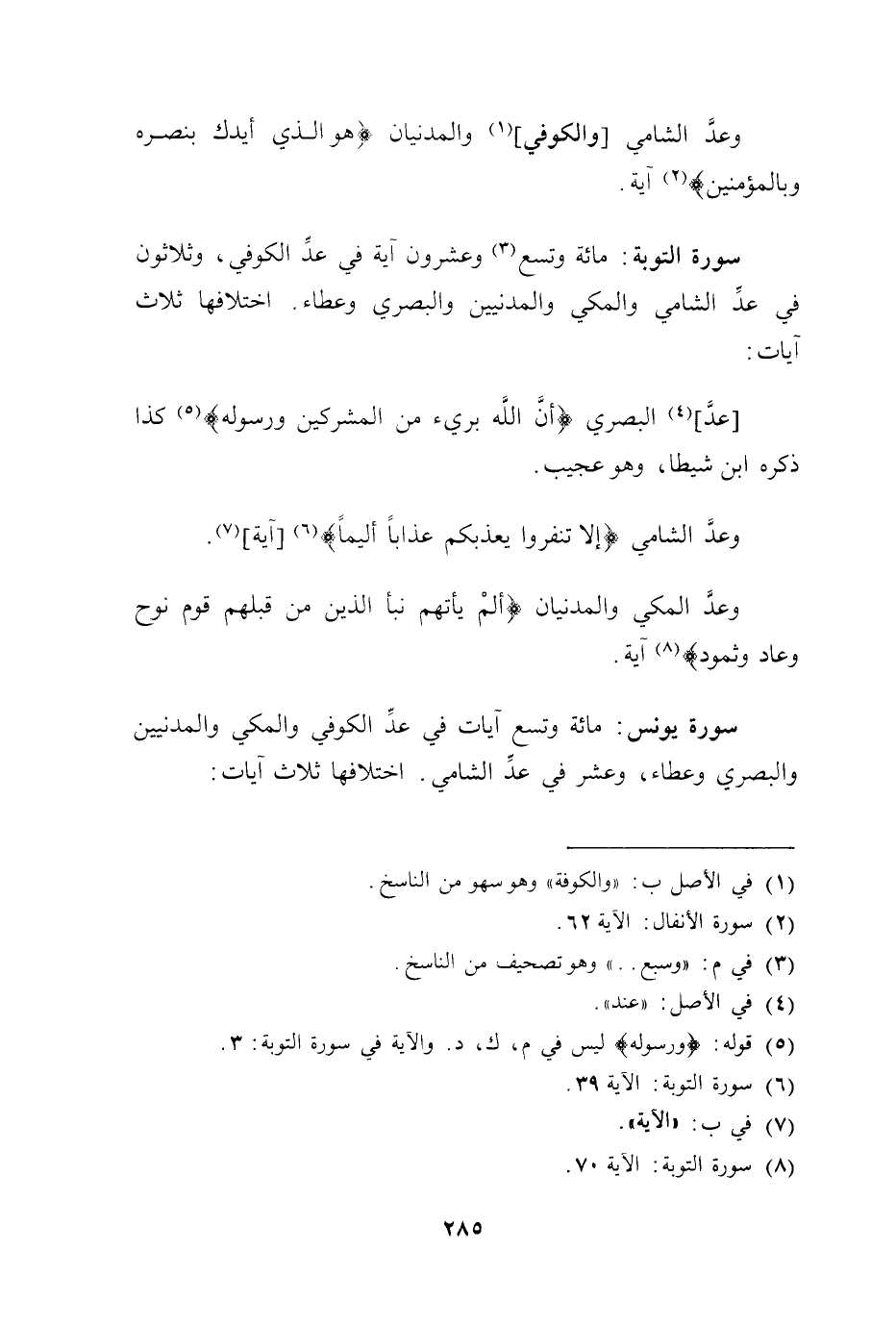 سورة يونس: مائة وتسع آيات في عدِّ الكوفىِ والمكي والمدنيين