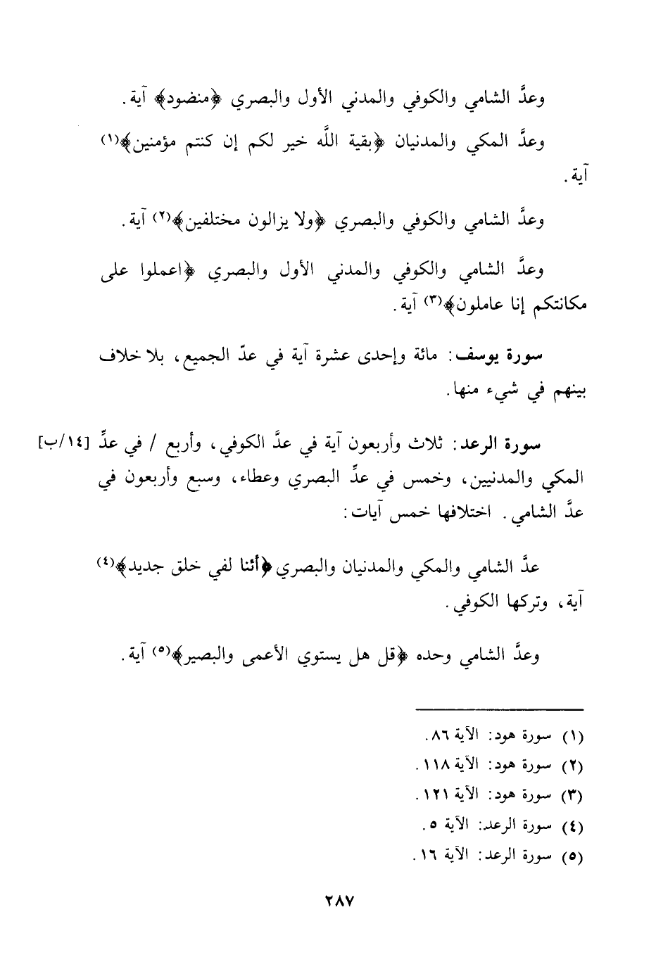 سورة الرعد: ثلاث وأربعون آية في عدِّ الكوفي، وأربع في عدِّ.
