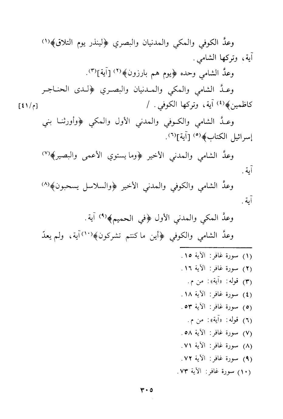 وعدَّ الشامىِ والكوفي والمدني الأخير (والسلاسل يسحبون) آية.