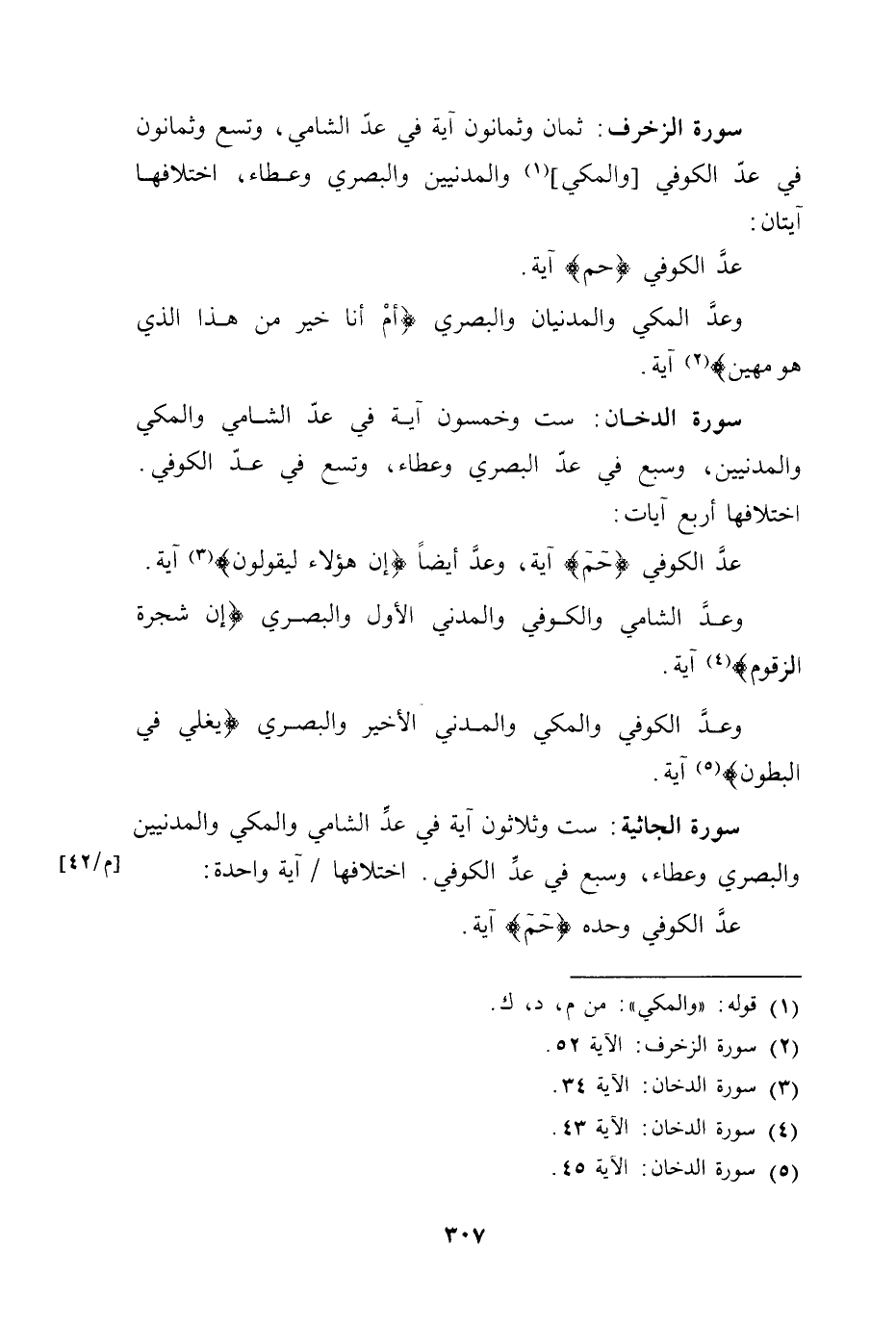عدّ الكوفي (حم) آية، وعدَّ أيضاً (إن هؤلاء ليقولون) آية.