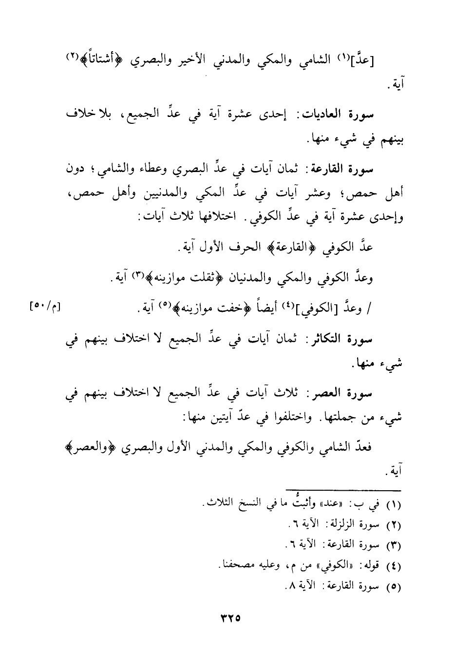 فعد الشامي والكوفي والمكي والمدني الأول والبصري (والعصر)