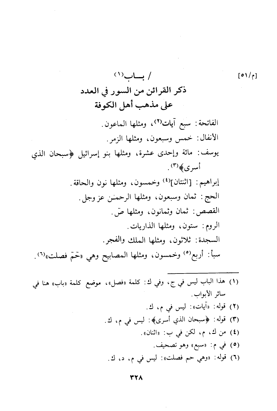 باب ذكر القرائن من السور في العدد على مذهب أهل الكوفة