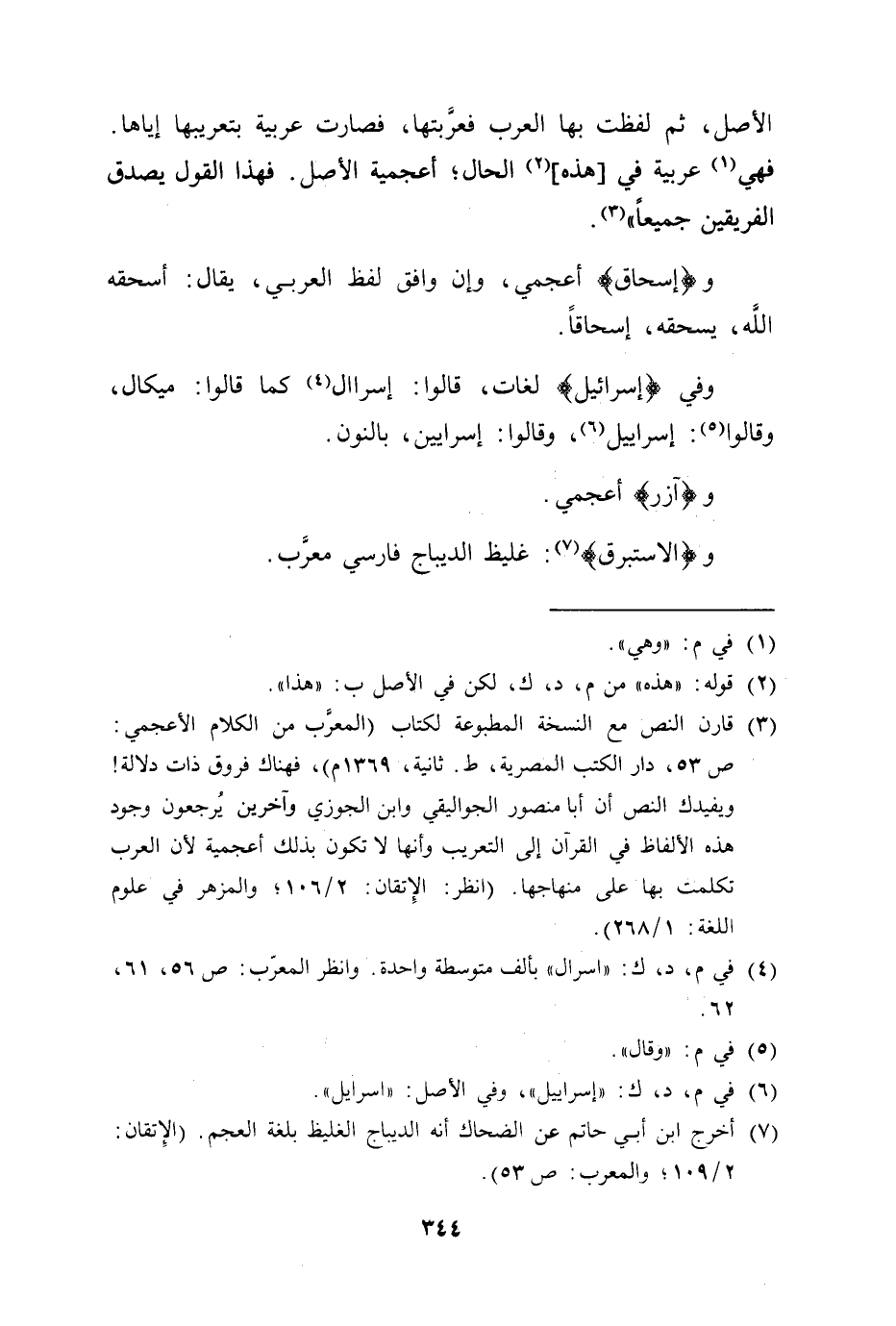 فهي عربية في هذه، الحال، أعجمية الأصل. فهذا القول يصدق