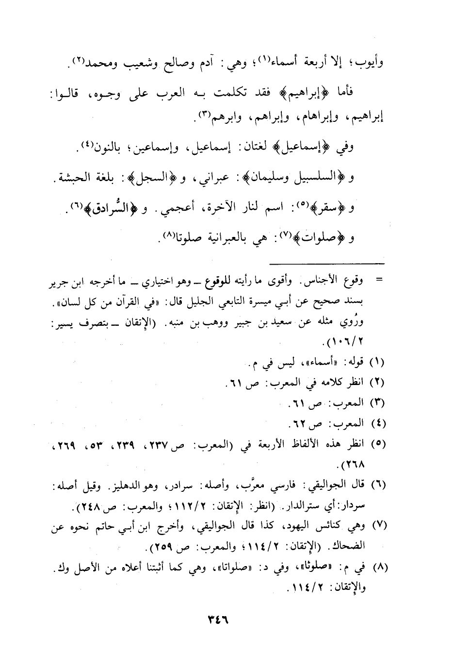 و (السلسبيل وسليمان) : عبراني، و (السجل) : بلغة الحبشة.