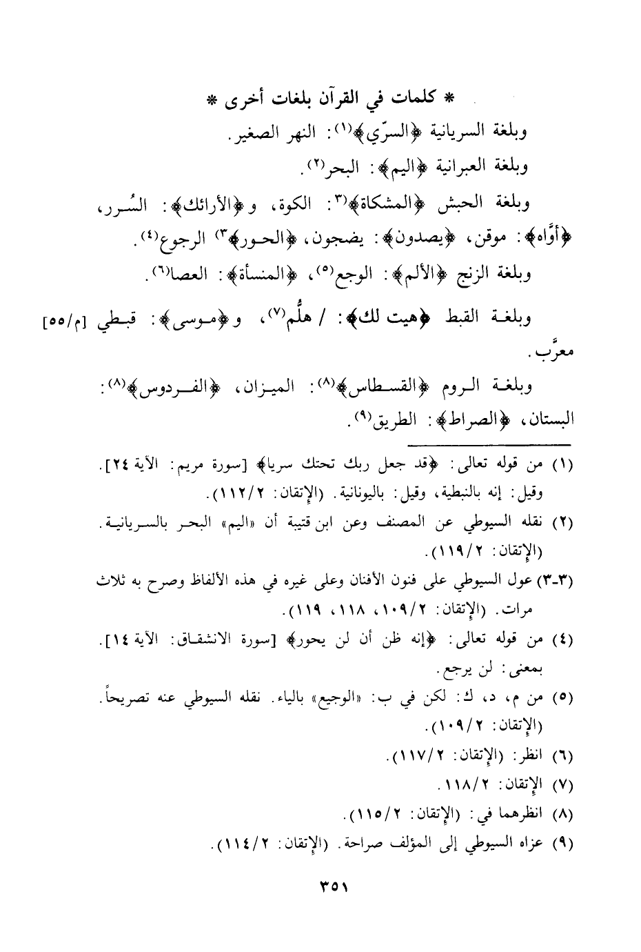وبلغة الحبش (المشكاة) : الكوة، و (الأرائك) : السُرر.