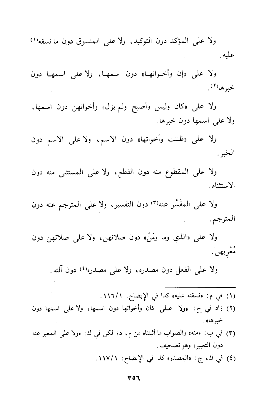 ولا على المؤكد دون التوكيد، ولا على المنسوق دون ما نسقه
