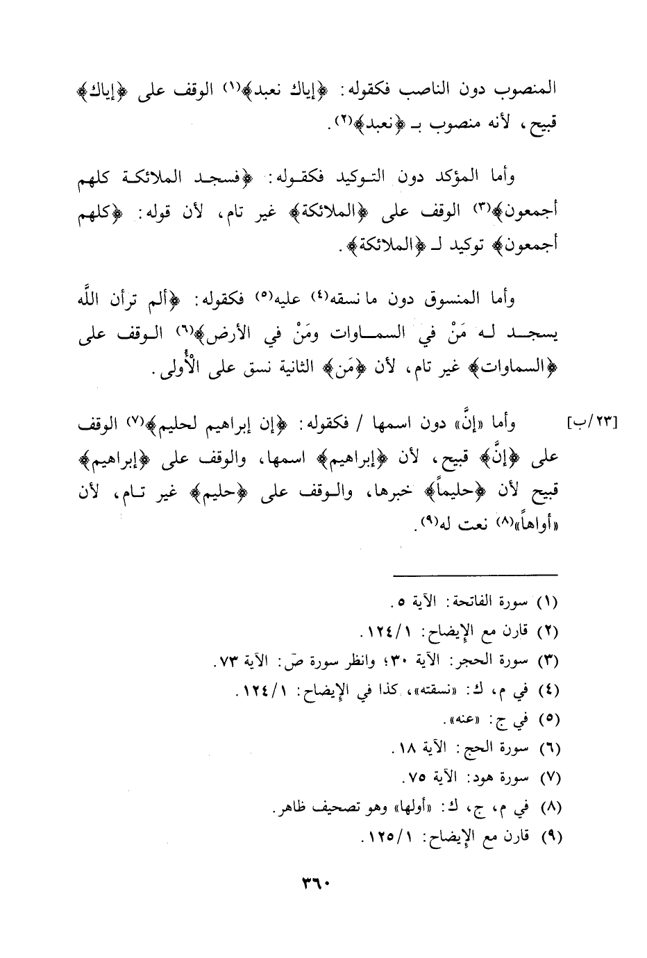 وأما "إنَ " دون اسمها فكقوله: (إن إبراهيم لحليم) الوقف