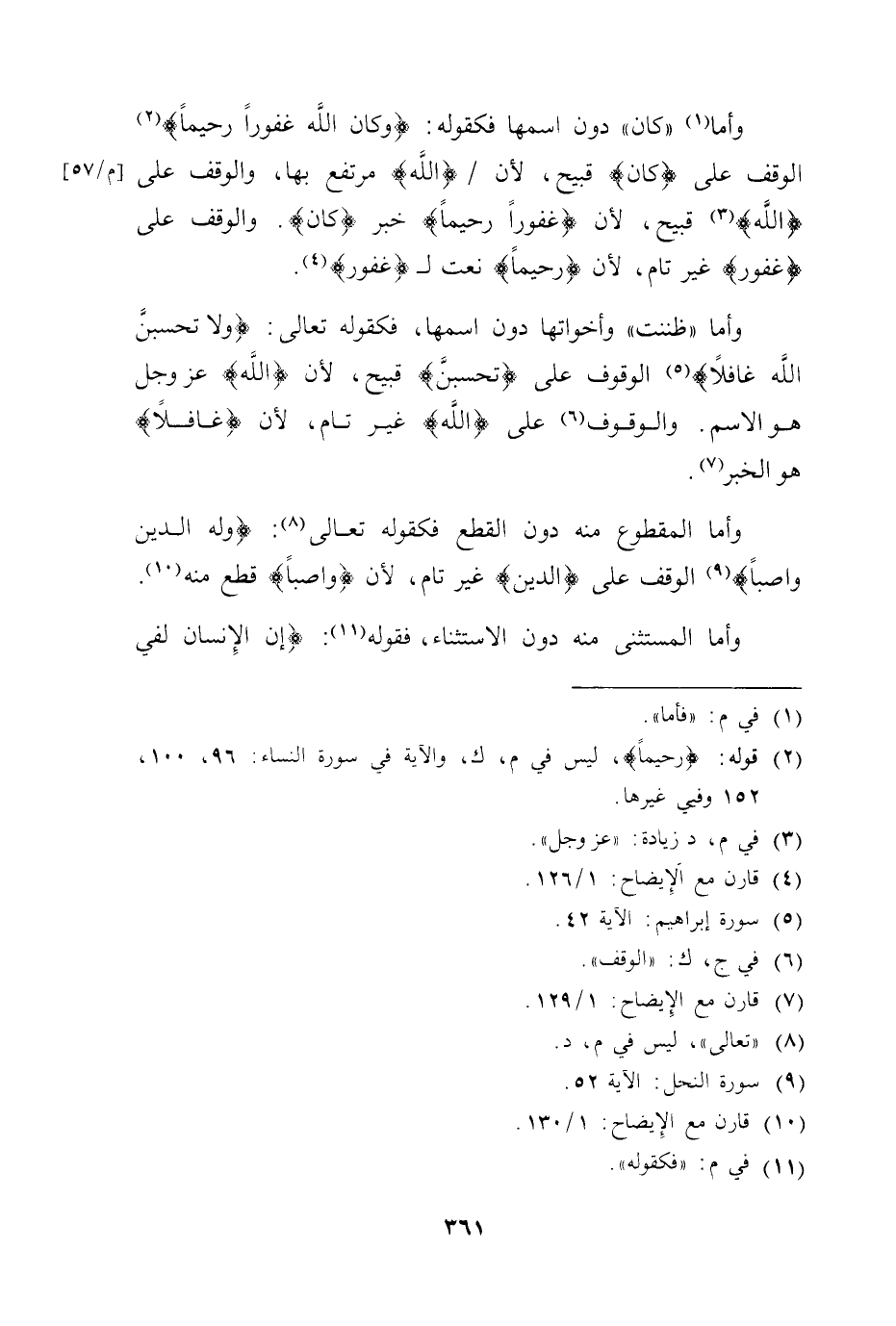 وأما "كان " دون اسمها فكقوله: (وكان الله غفوراً رحيماً)