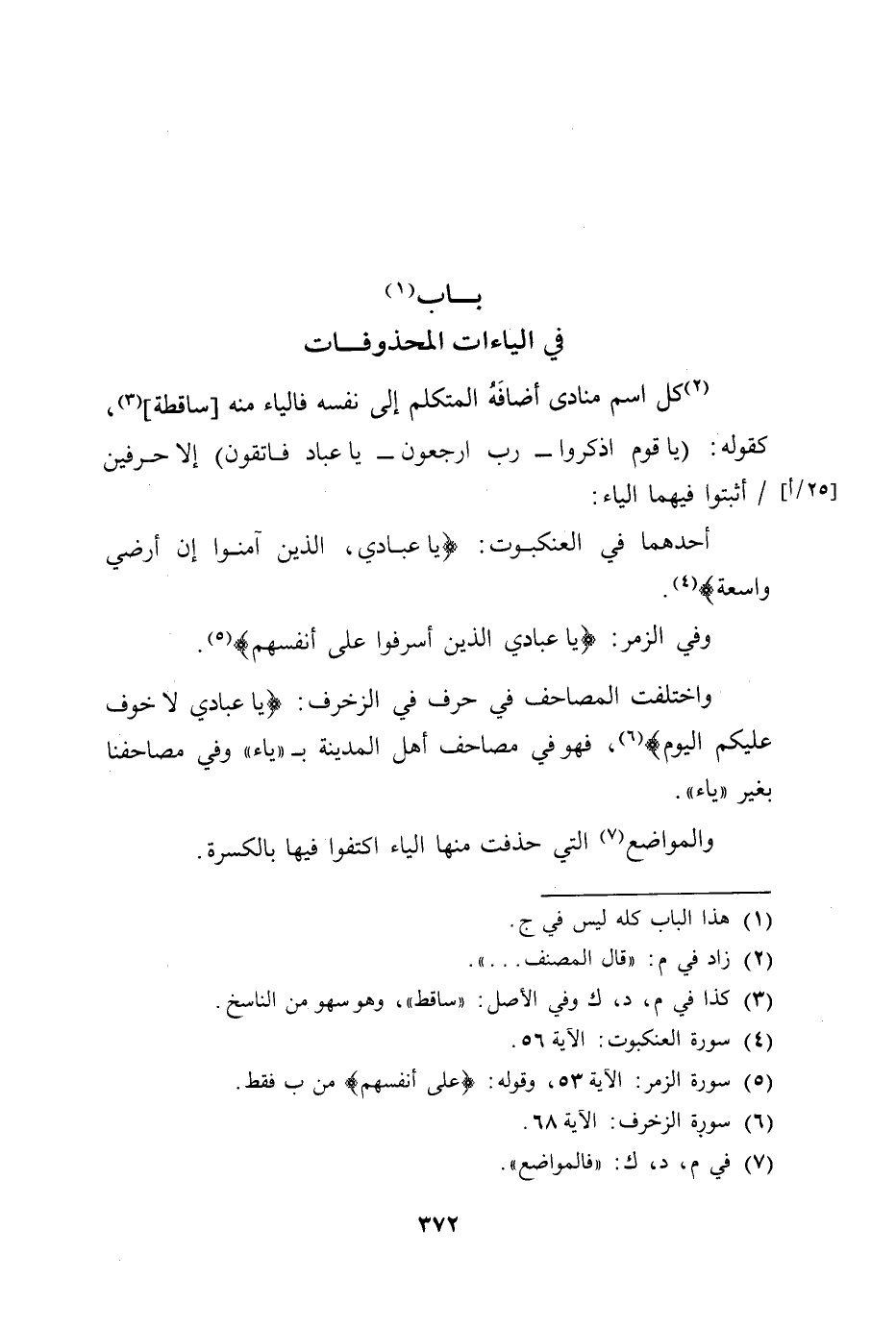 كقوله: (يا قوم اذكروا- رب ارجعون- يا عباد فاتقون) إلا حرفين