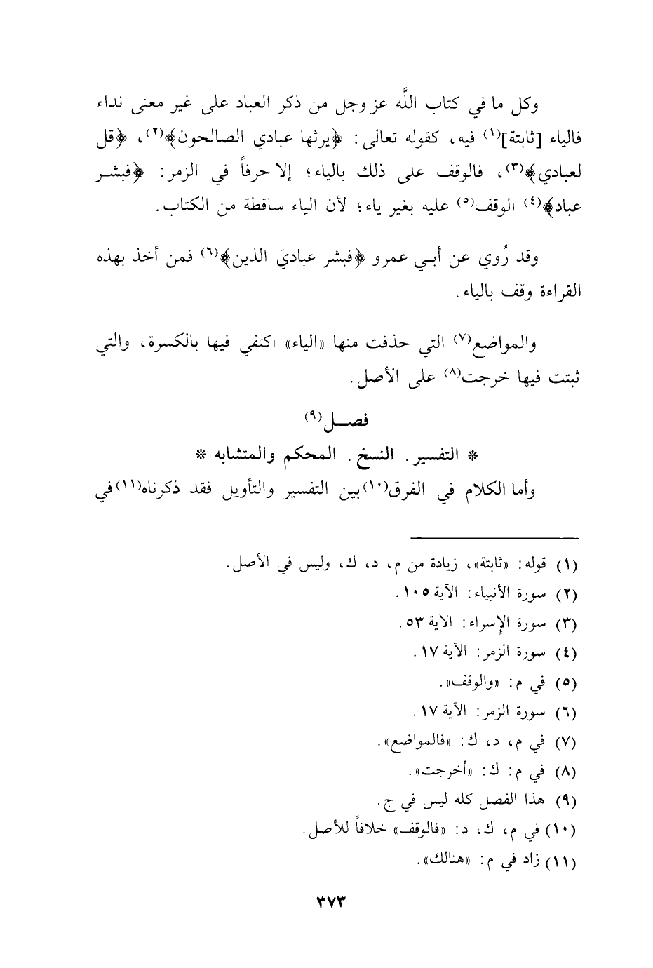 فصل " التفسير. النسخ. المحكم والمتشابه "