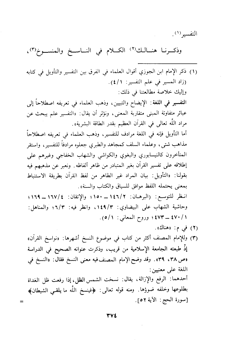 وذكرنا هنالك الكلام في الناسخ والمنسوخ،